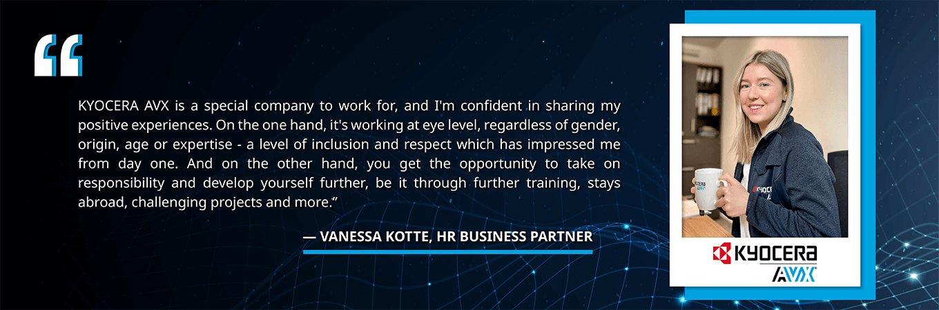 We provide you a safe working environment ad the tools that you need to be innovative and successful. In addition, we support you and your family with premium benefits* and opportunities to enagage at work and in your community. Together, we make KYOCERA AVX a truly great place to work.