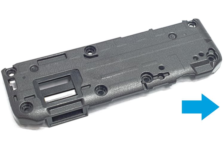 - The laser process activates the additives in the molded part leaving a visible “burnt” trace.