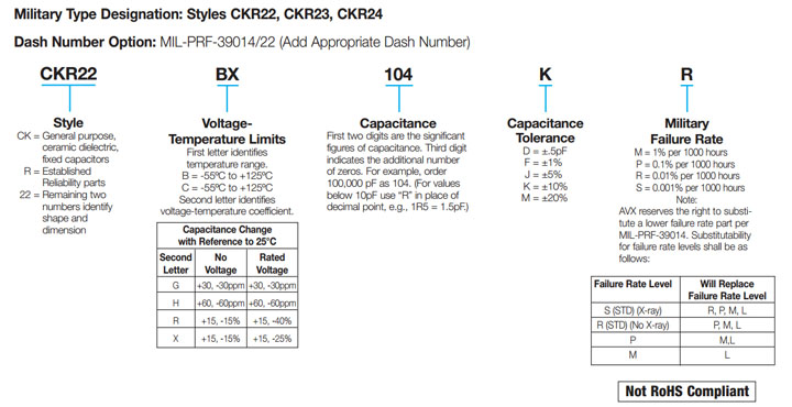 - Mil Spec Compliance: QPL MIL-PRF-39014 (Failure rates: M, P, R, S)