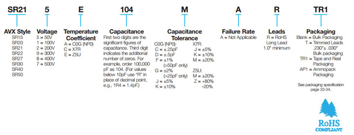 SR Series is a conformally coated radial leaded MLC. We offer NP0, X7R, and Z5U dielectrics standard. Alternative dielectrics are also available upon request. Voltages range from 50V to 500V and capacitance values up to 10µF. Suitable for commodity applications with voltage requirements up to 500V and where leaded device is preferred over SMD. Temperature range up to 125°C . Variety of common lead spacing options. Leaded capacitors exhibit excellent thermal shock and vibration resistance compared to SMD ceramics. High speed pick and place compatible. Parts are suitable for wave soldering and also RoHS compliant.