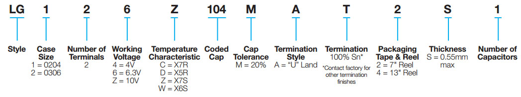 - 0204 and 0306 sizes utilizing X7R, X7S, X6S or X5R dielectrics with options to have up to 8 terminals