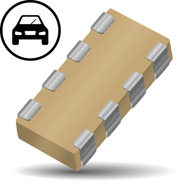 As the market leader in the development and manufacture of capacitor arrays, KYOCERA AVX is pleased to offer a range of AEC-Q200 qualified arrays to compliment our product offering to the Automotive industry. Both the KYOCERA AVX 0612 and 0508 4-element capacitor array styles are qualified to the AEC-Q200 automotive specifications. AEC-Q200 is the Automotive Industry qualification standard and a detailed qualification package is available on request. All KYOCERA AVX automotive capacitor array production facilities are certified to ISO/TS 16949:2002.