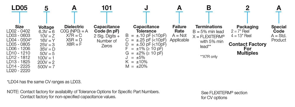KYOCERA AVX will support those customers for commercial and military Multilayer Ceramic Capacitors with a termination consisting of 5% minimum lead. This termination is indicated by the use of a “B” in the 12th position of the KYOCERA AVX Catalog Part Number. This fulfills KYOCERA AVX’s commitment to providing a full range of products to our customers. KYOCERA AVX has provided in the following pages a full range of values that we are currently offering in this special “B” termination. Please contact the factory if you require additional information on our MLCC Tin/Lead Termination “B” products.