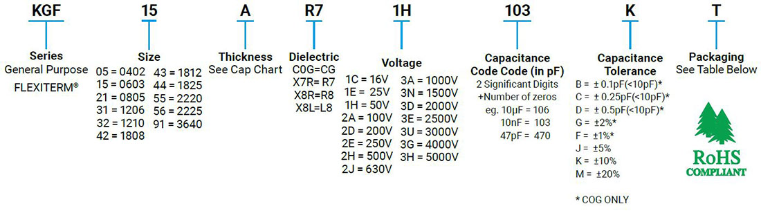 270pF up to 22uF (2220, 25V, X7R) - Dielectric: X7R or X8R
