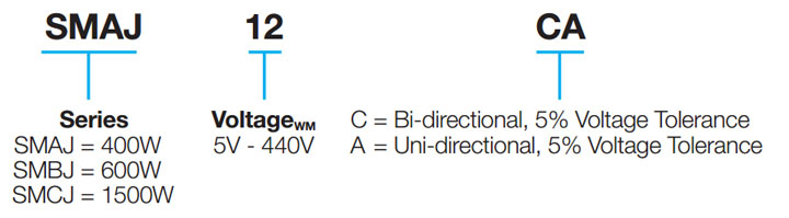 The SMAJ, SMBJ, and SMCJ Series are a popular format of general purpose transient voltage suppression diodes. They are based on the low leakage, high reliability, but low cost glass passivated chip rectifier technology