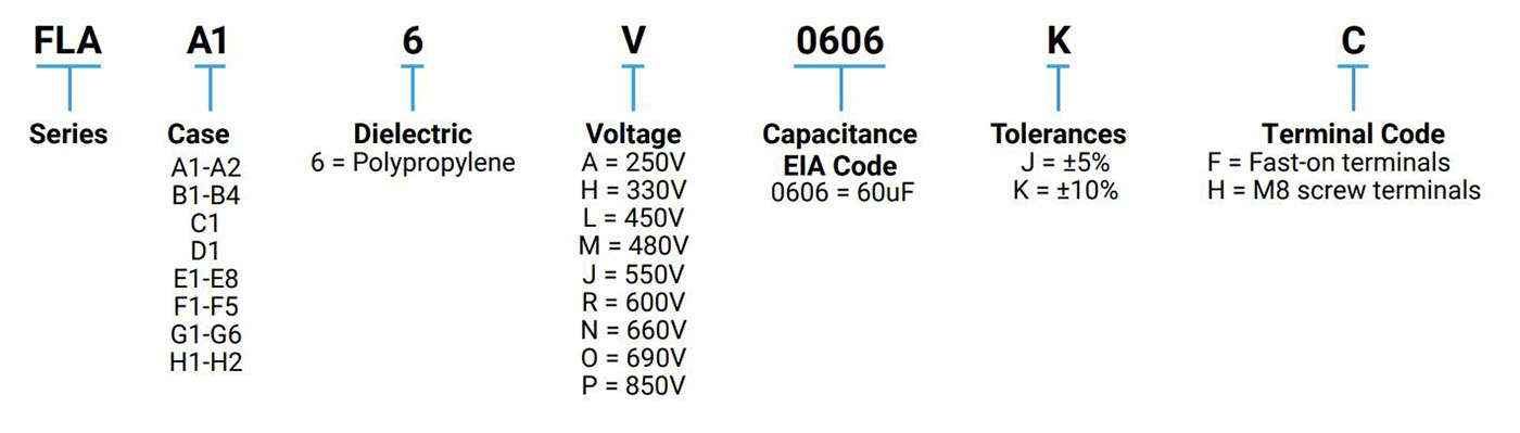 The FLA has been designed with overpressure disconnected device. They are suitable for output AC filtering for power converters, UPS systems, solar inverters and motor drives etc.