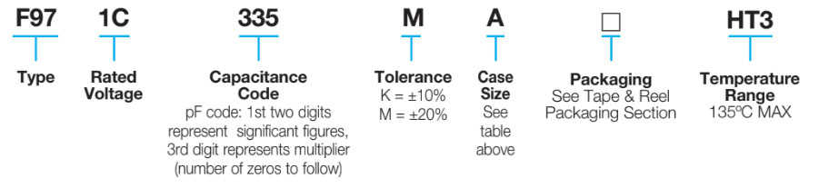 The F97-HT3 series High Reliability Solid Tantalum Electrolytic Capacitors are resin-molded, high-temperature chip capacitors that are AEC-Q200 compliant, making them ideal for use in automotive electronics (engine ECU) and industrial equipment. The series exhibits moisture resistance, wide capacitance range with 6.3 to 35V rated voltage and compliance to RoHS directives 2015/863/EU. F97-HT3 series offers expanded temperature range from -55°C to +135°C (rated voltage up to +95°C).