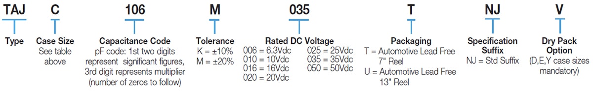 The TAJ Automotive Range is a general purpose SMT chip tantalum series that is available in five case sizes. The CV range of the TAJ Automotive Range is 0.22-680μF / 6.3-50V, and the main applications are general low power DC/DC and LDO.