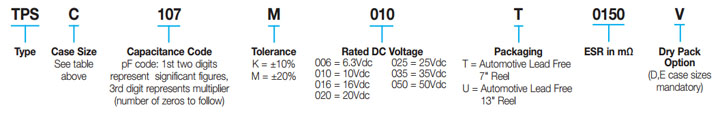 TPS tantalum capacitors have a maximum direct leakage current of 19.8μA and a maximum dissipation factor at 120Hz of 12%. Operating temperature range is -55 to +125°C. Importantly, these devices meet the requirements of AEC-Q200 for the automotive industry.