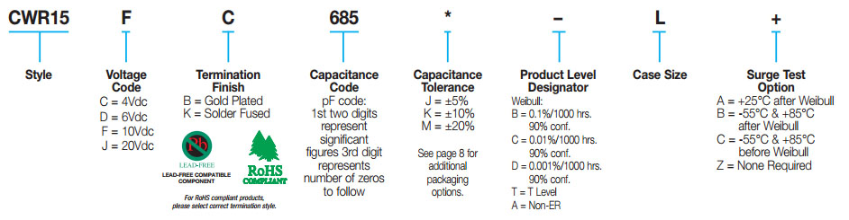 - Case sizes L (0603), R (0805), and A (1206)