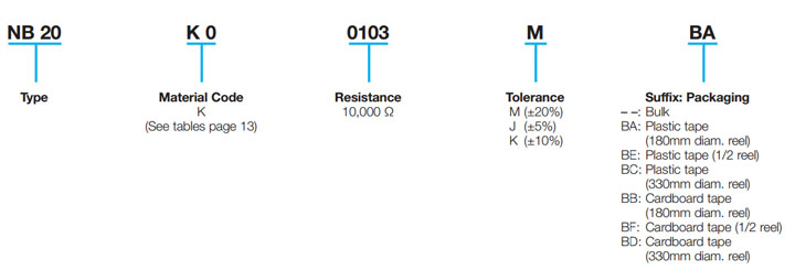 Surface mount thermistors with Ni barrier termination provide high quality NTC thermistor technology in SMT package ideal for lead free soldering thanks to Ni Barrier/100% Sn termination. Parts conform to AEC-Q200 specification for use in automotive applications and are also suitable for use in general purpose applications. Available in 0603 to 1206 case size and resistance values from 18Ω to 1MΩ. Operating temperature range is -55°C to +150°C. surface mount chip thermistors offer ideal solution for temperature compensation or temperature control of printed circuit boards.