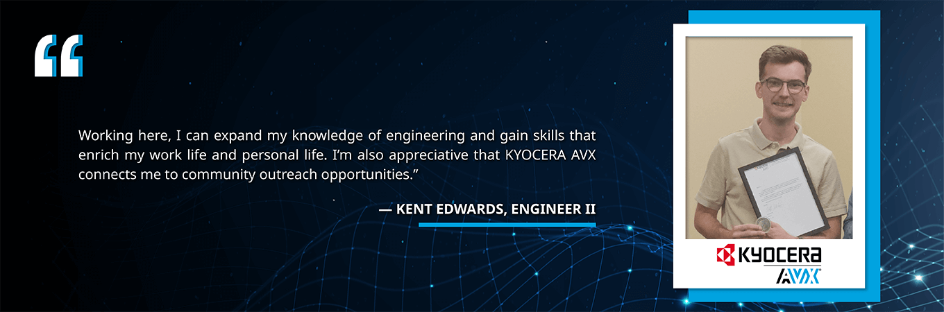 At Kyocera Group, we face challenges together and use technology to create a better world. At KYOCERA AVX, we foster an inclusive workplace where you can grow, thrive, and reach your full potential.