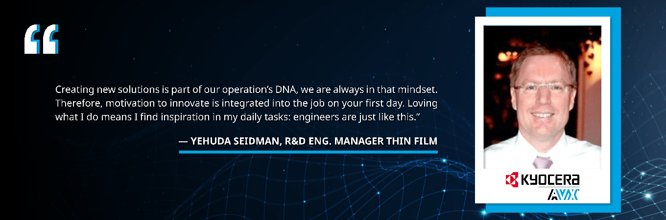 At KYOCERA AVX, we foster an inclusive environment where employees can reach their full potential. Focusing on key industries: automotive, information and communications, environment and energy, medical and healthcare: we work together with people around the world to address society’s most pressing needs, Now and In the Future. Using the power of technology, we create a better world.
